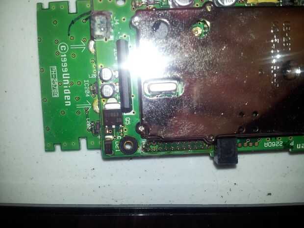 Al abrir el explorador que cayeron los cables de la batería, la batería era el segundo pack de recargable utilizado en este explorador, el pack 1 había filtrado un poco pero en el momento no había señal de cualquier otro daño. Un vistazo rápido en el teclado PCB mostró una región descolorada y y demostró que la Junta era un tablero de múltiples capas, me va bien tiene que encontrar un teclado de reemplazo o volver a programar el ordenador de a bordo para poder obtener el escáner otra vez, comprar un nuevo portátil scanner($250+) es manera abajo en mi lista de cosas que hacer , de hecho probablemente reemplazará eventualmente con un RPi2 con una pantalla táctil LCD de radio SDR. Después de un poco más decidí que no tenía nada que perder simplemente cortando la sección dañada del teclado. Empezar a trabajar o aún tendría un escáner no funciona. Decidí cortar la última fila de teclas para tratar de limitar la propagación de la corrosión, por lo menos hasta que tuve un escáner RPi2 :)