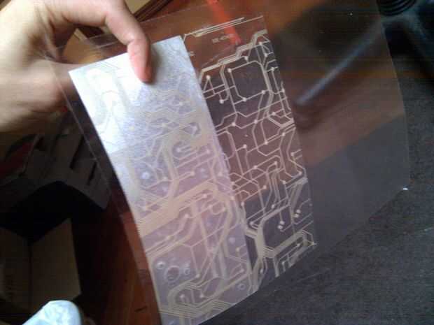 2) pegué este rectángulo de hoja de espejo en un punto atractivo en la hoja del teclado, poniendo con cuidado hacia abajo y empuja a las burbujas de aire. Si eres paciente, puede utilizar un poco de agua para un sellado totalmente libre de burbujas, pero luego tienes que esperar a que todo se seque, y no era tan paciente.