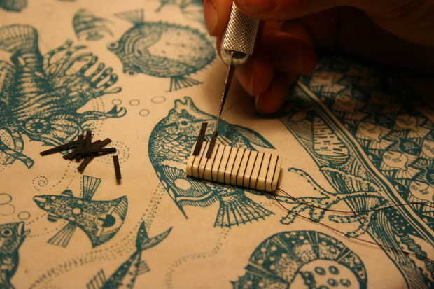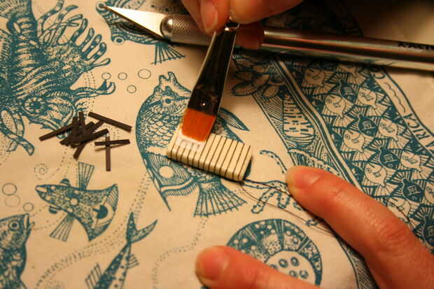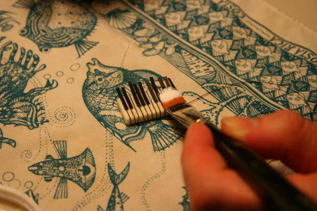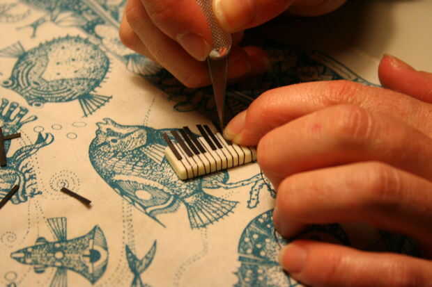 -Para colocar las llaves, me parece mejor palillo justo con el x-acto cuchillo y colocarlos en las roscas decoupaged todavía mojado. Usted será capaz de enderezar y ajustar una vez que estén todo en antes de que se seque el decoupage.