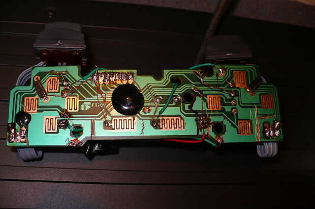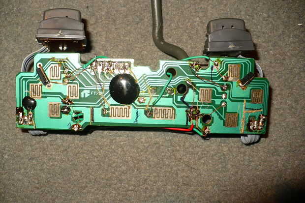 Abra el Joypad y observar la placa de circuito. Verás que el lugar donde los botones de empujan en el circuito es una plaza con muchas líneas finas. Cuando pulse un botón de goma debajo de prensas en este lugar y hace contacto entre las líneas finas a la izquierda y a la derecha. Así que lo que tienes que hacer es soldar un cable que hace contacto con las líneas finas a la izquierda y un cable que en contacto con las líneas finas de la derecha. Aquí es mi combinación de cables.