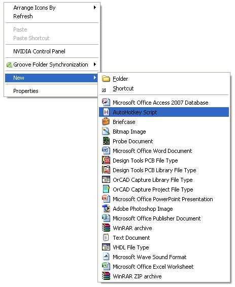 Una vez haya instalado AutoHotKey, haga clic derecho en cualquier lugar en el escritorio y seleccione 'Nuevo' y luego 'AutoHotKey Script' (cuadro 1). Nombre del archivo de .ahk algo informativo para que no olvide lo que es.