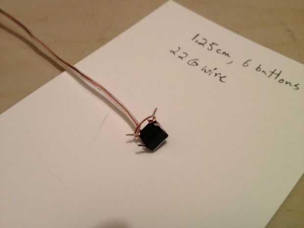 Prueba tus botones así que ya sabes que dos conductores son iguales, y utilizando los alicates de punta, alambre pequeño forma dos bucles de una distancia tan amplia como su botón lleva, alrededor de 5 mm.