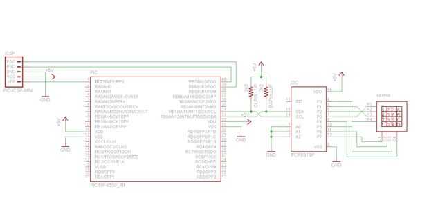 El microcontrolador (MCU) y el chip I2C son ambos conectados a los 5V de la fuente de alimentación. En mi caso que el circuito es alimentado por mi programador MCU que recibe energía del puerto USB de mi ordenador.