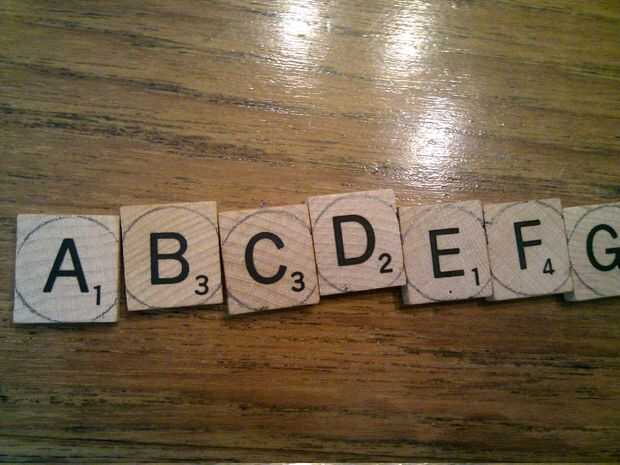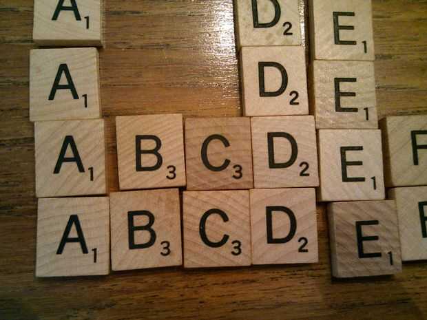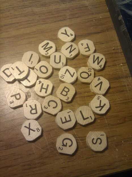 La mina esa vieja Scrabble juego las letras mejor aspecto. Las teclas de 26 letra se hará de estas pegado a las piezas de espiga de arce. Trace un círculo en la parte superior cada una usando un pasador, tal que el número (valor) será dentro del círculo. La arena de las esquinas, áspero, con un cinturón o una lijadora de disco. Mente tus nudillos! Las letras se lija más cuidadosamente una vez pegado a las espigas.