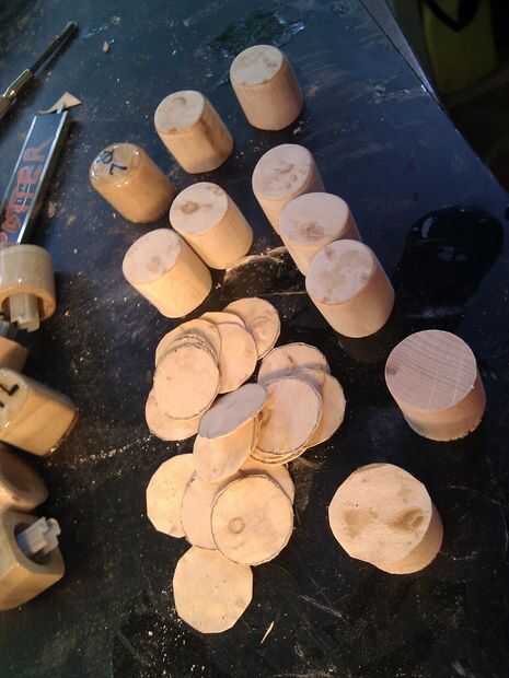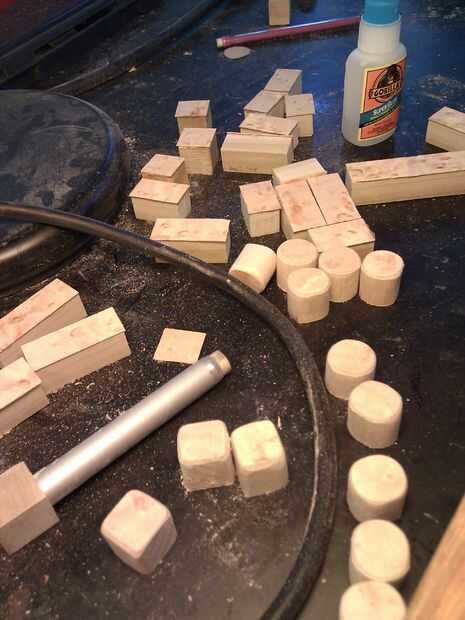 Haz alguna chapa hermosa (a menos que se utiliza una madera más interesante que el álamo para los espacios en blanco dominantes cuadrados y rectangulares), 1mm de espesor (1/32"). He utilizado chapa de arce de pájaro de madera de Highland. Seguimiento de cada tecla de la letra no a la chapa y cortar los círculos o rectángulos con un cuchillo afilado o tijeras. No es necesario ser muy preciso--objetivo es demasiado grande, en lugar de demasiado pequeño; se lijar después de pegar para que sean perfectos. Pegue estos igual para las letras, sobre la parte superior de la correspondiente espacio en blanco dominante, salvo utilizar el pegamento de cianoacrilato gruesa. (He encontrado que el color amarillo de cemento de contacto vino a través de la chapa).