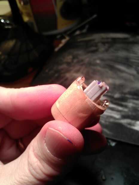 Cuando el epoxi está completamente duro, clip de las gotas con los cortadores de final. Conecte las llaves en la base del teclado y asegurar trabajo todo sigue bien y no chocar entre sí. Si se frotan o protuberancia, más lijado es necesario. Poner la base en el cuerpo de madera y Compruebe la otra vez. El cuerpo más de la arena si es necesario, anticipando el espesor del acabado epoxy recibe.