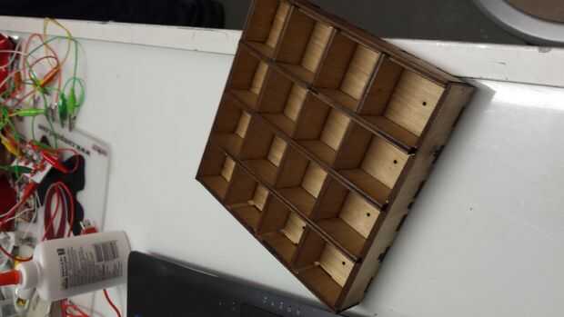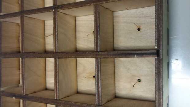 Si no tienes acceso a un láser de corte o herramientas de madera de la tienda, haz una caja de cartón cerca de 8 pulgadas de ancho, corte hasta 1,5" de altura y los divisores en el pegamento. Con cuidado, pueden aparecer los agujeros hacia fuera con ningún objeto punzante...