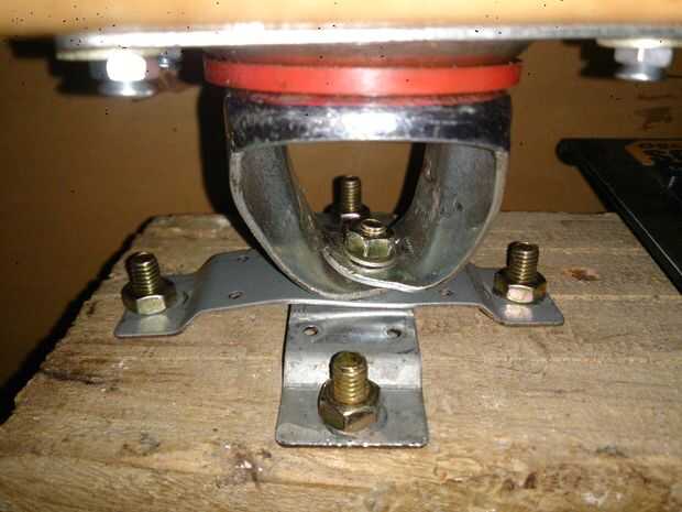 El orificio central está atornillado a la rueda giratoria y ahora tengo cuatro puntos para sujetar una pieza de madera donde se pone el teclado.