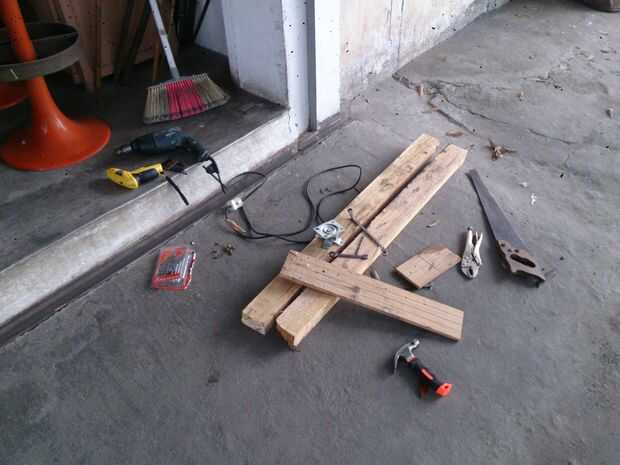 Usar cualquier madera que puedo encontrar y es áspera con la longitud de mi teclado y la rueda giratoria de lado a lado. Para escritorio hogar usted puede buscar un mejor trozo de madera. Más amplia es buena para su descanso de la palma, pero no demasiados porque queremos ocultar bajo el escritorio ¿no? Encontrar el buen trozo de madera, pero no demasiado pesado.