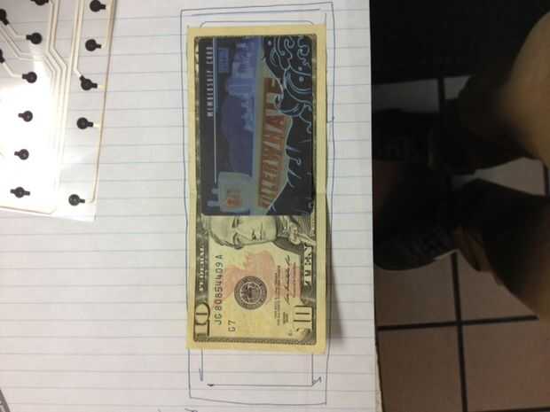 Colocar algo de dinero y una tarjeta de crédito / tarjeta de identificación para asegurarse de que encajan en los recortes de plantilla.