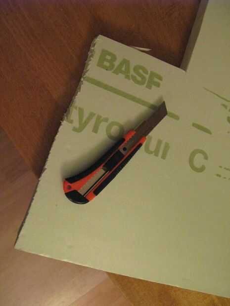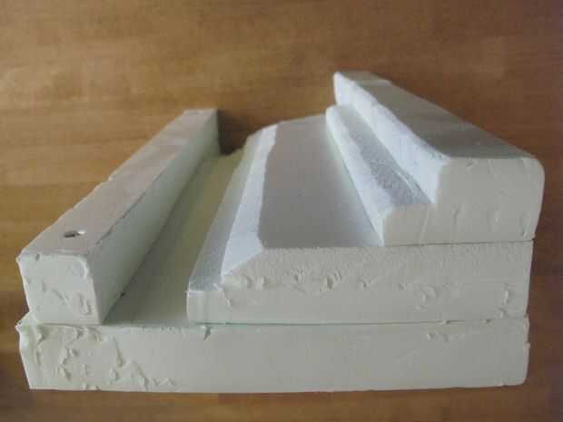 Poliestireno se puede comprar en cualquier tienda de mejoras para el hogar para un par de Euros, por lo general viene en hojas de 1 m + y es utilizado para el aislamiento. Usted querrá conseguir la materia de la cerrado-célula, que es mucho más fácil de manejar que la espuma de poliestireno celular (muy sucio). El titular se muestra está construido en tres hojas con espesor de 2.5 cm. En general, más delgado es mejor, desde el más fácil de la capa que al cortar las piezas grandes.
