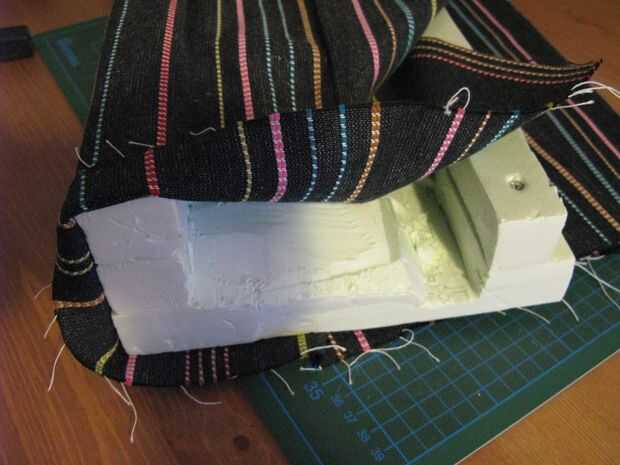 Por último, poliestireno no es el material más bonito. Si usted tiene un pedazo de tela, corte, tamaño y fijar con una grapadora o alfileres de modista fina.