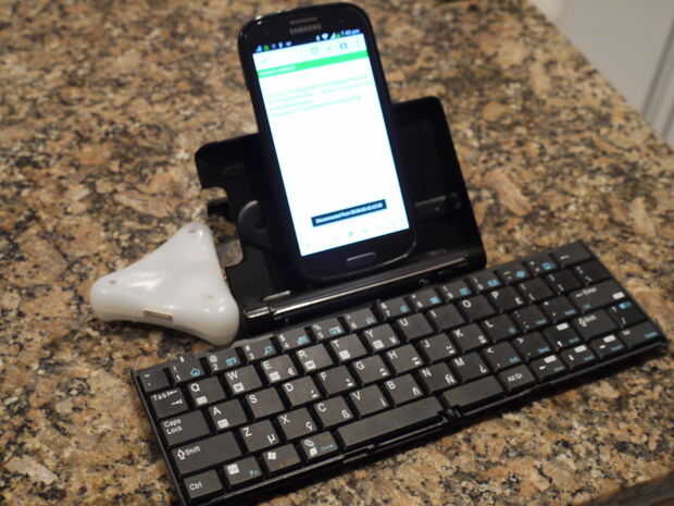 También puede pegar en alguna cinta de Velcro la Brainlink y el teclado para mantener el Brainlink en lugar.