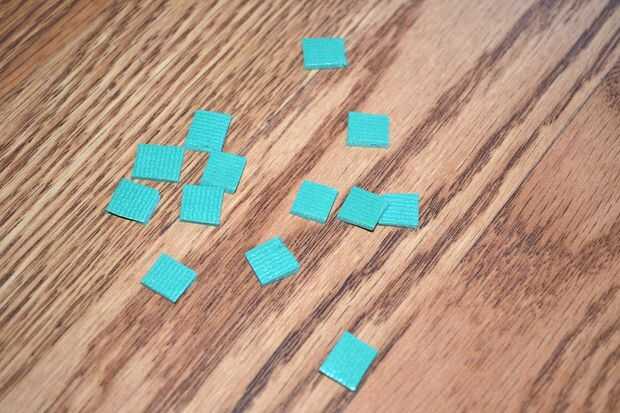 Tomar la espuma y cortar unos trozos de 1 cm x 1 cm. Debe haber aproximadamente tantos cuadrados de espuma como tornillos.