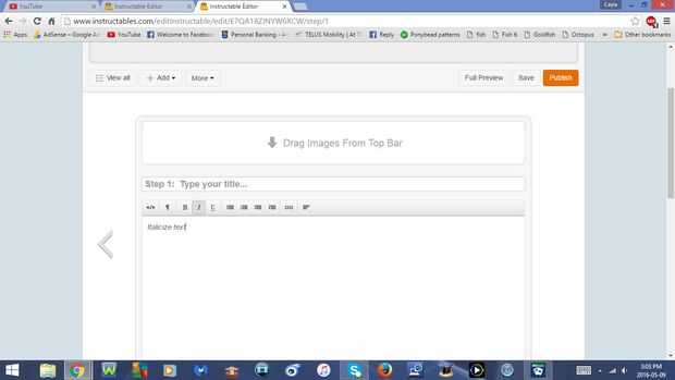 - Usted puede también poner en cursiva el texto si escribe algo, luego resalte el texto y presione Ctrl + I