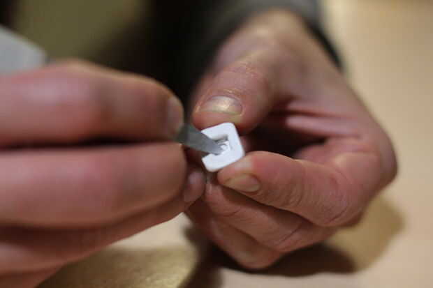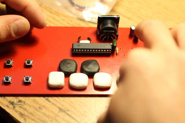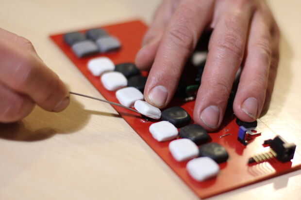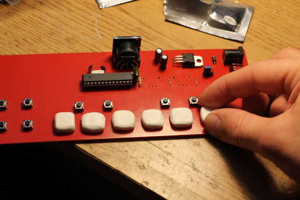 Una vez el Sugru haya "fraguado", retirá los botones con cuidado (de a uno por vez). Vas a ver formaron un molde perfecto del certamen. Con la ayuda de una herramienta punzante (en mi caso una lima de uñas) retirá la silicona, formadas por la base metálica del certamen para formar así una superficie cuadrada plana. Esto le dará mayor flexibilidad y superficie de contacto al certamen. Repetí el paso con cada uno y listo! Tu teclado MIDI está terminado. Sólo falta ayuda el código y conectarlo a algún módulo de sonido.