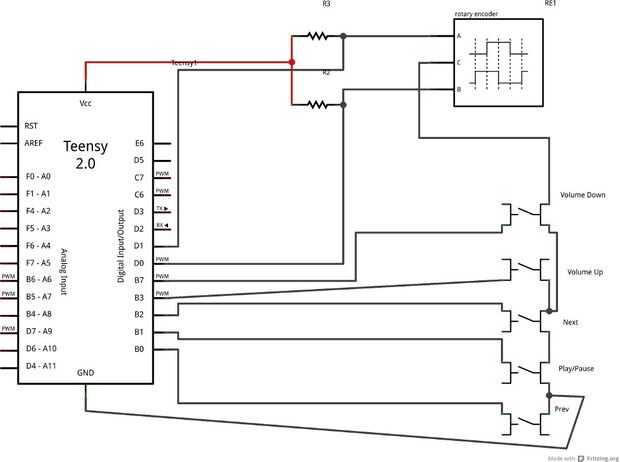 PJRC era realmente sencillo conectar los botones y ejecutar el código (el codificador rotatorio participó un poco más, pero por poco).