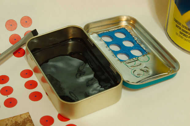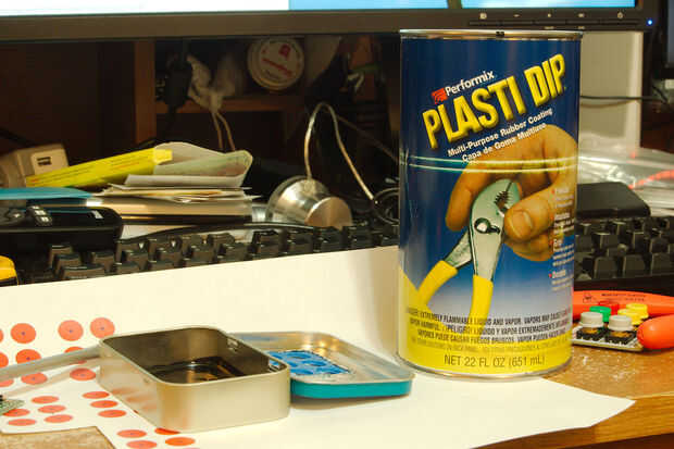 Lo divertido sobre la electricidad es que realmente no le importa acerca de cómo obtiene de negativo a positivo. Por lo tanto, tenemos que tomar algunas medidas para asegurarse de que llegue de un extremo a otro de la manera que queremos. Plastidip es una manera muy agradable para lo que sea aislar eléctricamente. Derramé algunas en la parte inferior de la lata, se diseminan alrededor un poco y deje que se seque. Piso inmediato!