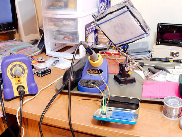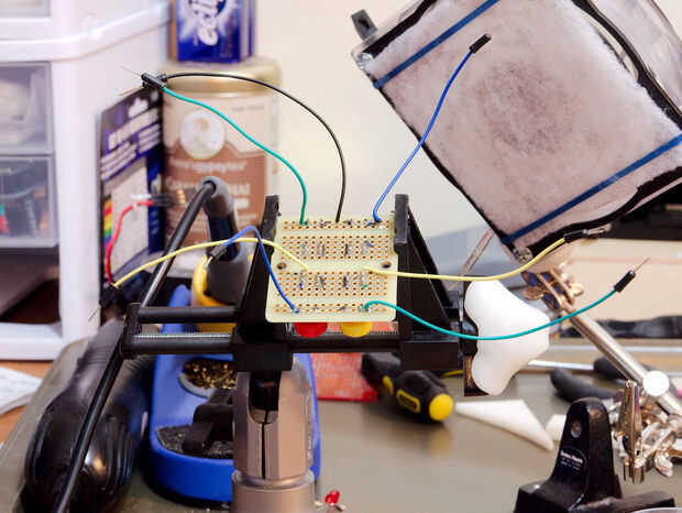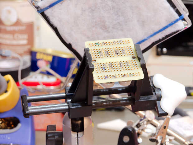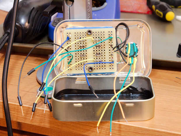 También, es el momento de un agujero perforado para que el codificador rotatorio para colocarse en la tapa de la lata (otra vez, olvidé colocar una foto de ella), se puede ver vagamente aquí.