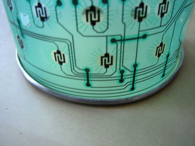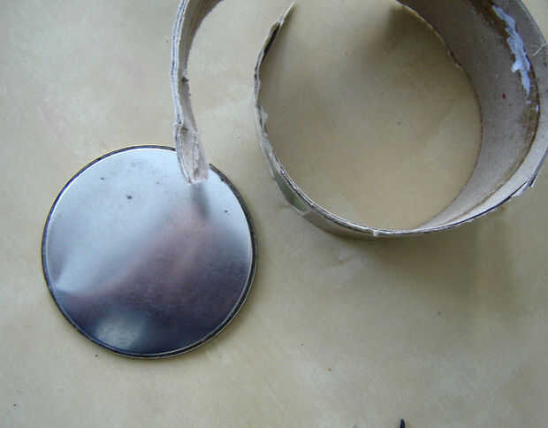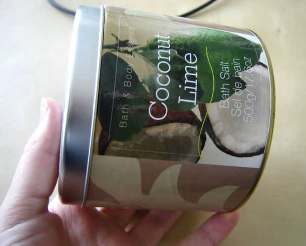 Usé la tapa del metal y la parte inferior de un contenedor de sales de baño. La tapa fue utilizada para la base, puesto que tenía un bonito borde. No estoy enteramente satisfecho con la parte que usé para la parte superior pero cuando regresé a la tienda a comprar más de las mismo sales de baño (con la tapa bien que podría utilizar) me ha decepcionado encontrar que ya no vendía. Desde entonces he estado en la búsqueda.