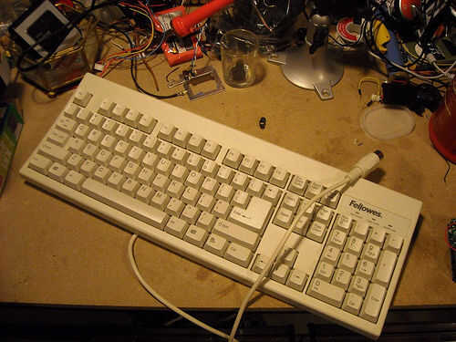 componentes eléctricos NO... sólo abalorios... sabes... de un teclado...Inspiración para el proyecto:Mi viejo portátil perdido dos teclas mientras valientemente donando piezas para guardar mi teclado inalámbrico. Guardé las llaves en mi escritorio p