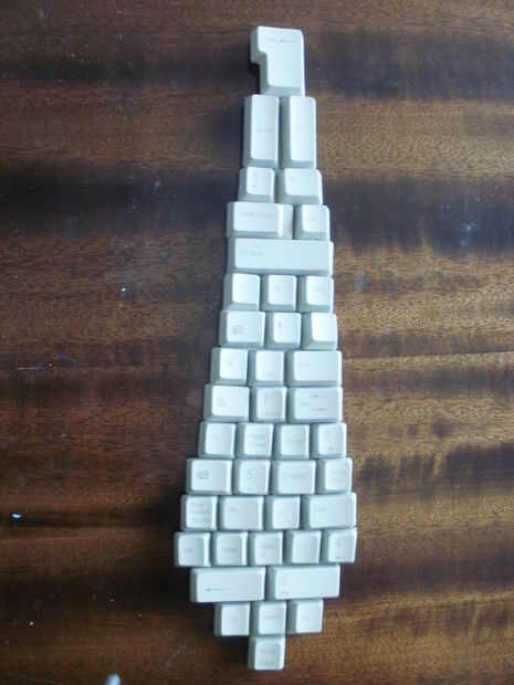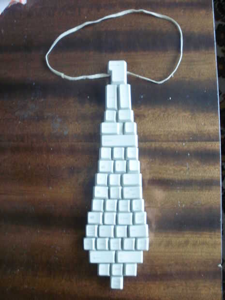 Después de alcanzado la perfección utiliza cinta transparente para mantener la forma mientras que da vuelta y pegar él. Acostumbraba pieza delgada de plástico que sujetan las llaves. También es flexible para no frenar cuando trenzado. Corté un pedazo en forma adecuado. Que pegué las claves de la misma manera les pegué en la cinta. Última mantenía la tecla ENTER que puedo utilizar como un nudo. Al final os adjunto un trozo de cinta para hacer el lazo completo. Como se puede ver en la fotografía de la introducción he añadido dos teclas para ocultar la eslinga donde no está bajo el cuello.