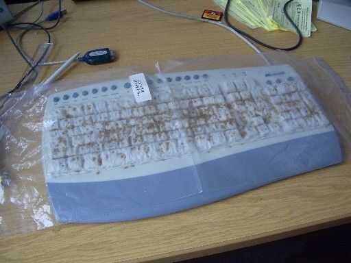 Las semillas del agua otra vez y colocar el polietileno sobre el teclado.
