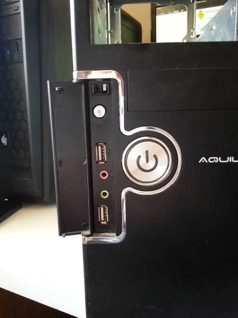 Encontrar una caja de la pc no necesita que tenga puertos usb frontales. Quitar la parte delantera y el usb puerto de pcb.