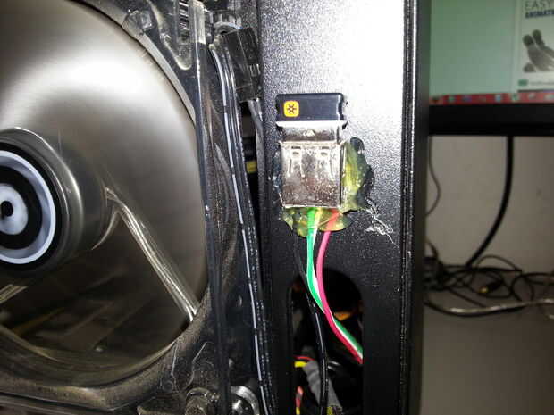 Aislar el puerto usb de damnifica con pistola de pegamento o cinta y pegamento para el caso. Pop de la parte posterior delantera y todo listo!