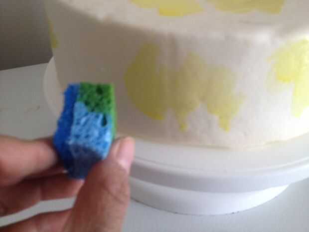 Con pincel de esponja o pintura, empezar a untar/cepillado un poco aquí y allá