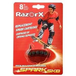 Este instructable trabaja en el principio que cuando flint se arrastra en la acera dejará atrás una lluvia de chispas. Así que ¿dónde podemos encontrar un pedernal como el material para el trabajo? Distribuidor local de caja grande! Recogí algunos cartuchos de afeitar X chispa para este proyecto. Se significan para ser montado en la parte trasera de una tabla de SK8 de chispa. Ya no monto Skate, necesitaba encontrar una manera para fijar esto a mi bicicleta.