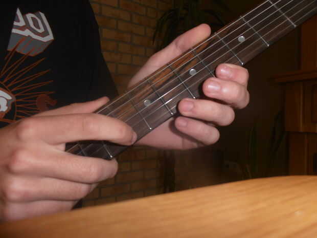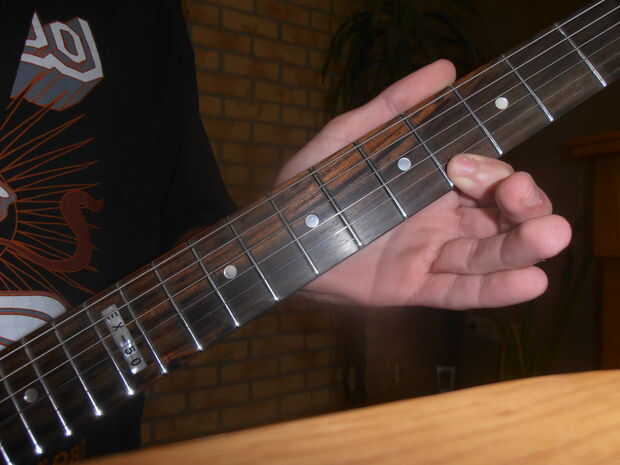 6: Suelte el dedo del anillo del séptimo traste. A continuación parpadeará de nuevo con el dedo correcto para sacar a la quinta.