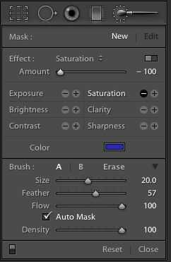 Haga clic en el botón en el panel del pincel de ajuste esto hará que el cepillo hacen su imagen blanco y negro