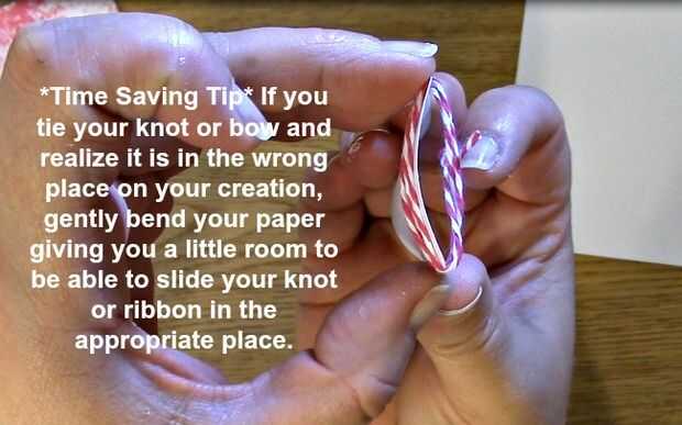 Si vieron el video, verás que no me gustó que el nudo era por mi sentimiento de etiqueta. Este es un Consejo rápido sobre cómo resolver ese problema para que usted no rasgar el papel mientras que intenta mover el nudo o arco al lugar quería que fuese para su proyecto.