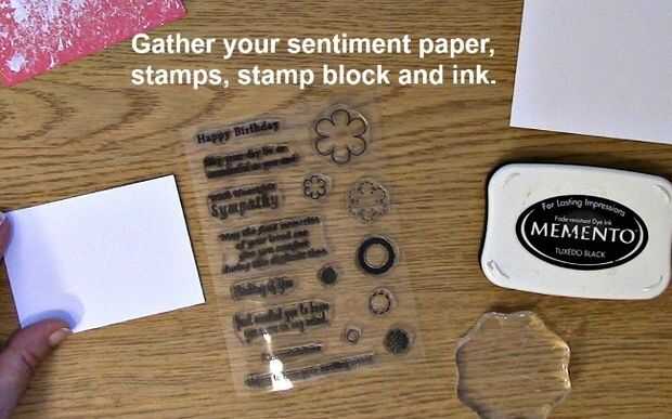 Paso 6: Se reúnen su sellos, papel del sentimiento, sello bloque y cojín de tinta