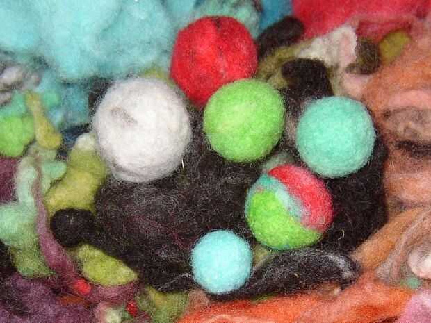 Ideal para mojado o seco afieltrado, hilado, tejido que hace cosas para bebés, niños, mamás, papás, perros, gatos-cualquier persona que le gusta este tipo de cosas! Malabares con grandes y son bastante fáciles en lámparas y muebles para jugar en interiores. Las maravillosas propiedades de la lana lo hacen un material muy seguro para niños asmáticos o alérgicos. Lana no albergan a ácaros como otros juguetes peluches. También lana absorbe el calor se mantiene, que es una comodidad bienvenida, especialmente en una preciada muñeca o animal de peluche. Se muestra aquí son aguja de fieltro lana granos. Delicioso! (No para el consumo humano).