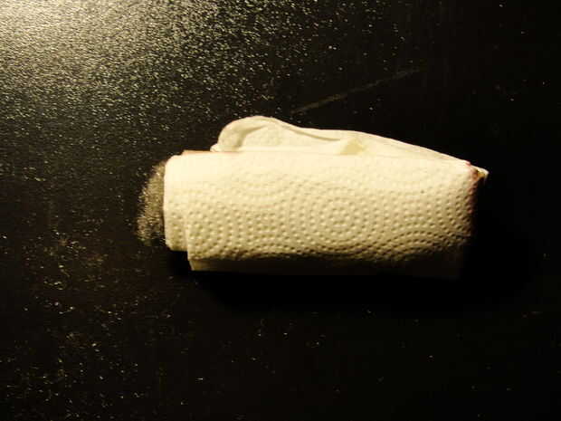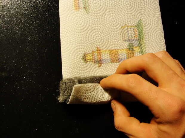 2. suavemente el rodillo o doblar la lana en su material de papel.