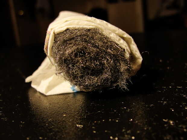 4. tire sobre una mitad de una pulgada de la lana de acero fuera de la final.
