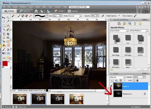 2. Abra la foto más oscura y pegar el segundo más oscuro en la parte superior. El segundo más oscura foto aparecerá por encima de la foto más oscura en la barra lateral de capas.