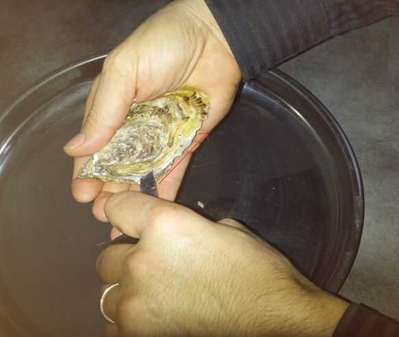 Técnica lugar des huitres / técnica de apertura de ostras (4 / 5 paso)