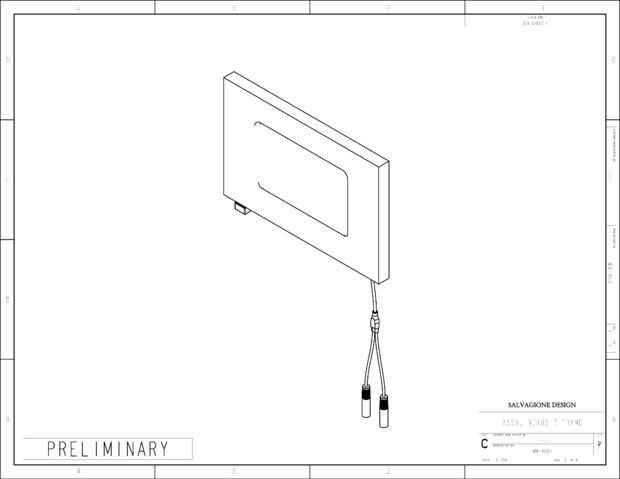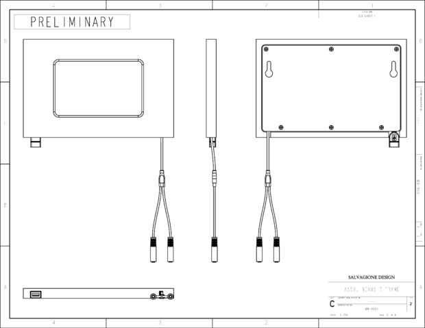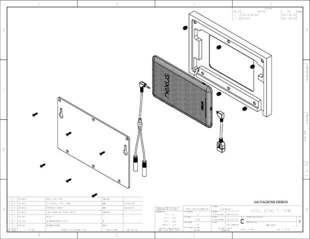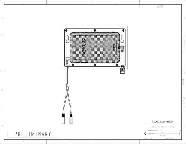 Paolo y yo trabajamos juntos para diseñar un marco que permita la tableta caber cómodamente, dejar espacio para las conexiones USB y audio y colgar en una pared con orificios.
