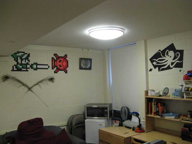 Usé la misma técnica exacta para reproducir un diseño que creé en mspaint como una pieza más grande de arte de la pared de papel de construcción. Por supuesto, ya que todo se hizo con el papel negro tuve que cortar cada pieza dos veces.