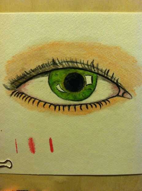 Tocones y tortillons ofrecen mucho más controlan, pero cubren menos rápidamente. Sin embargo, el color es menos transparente. Para usar tocones y tortillons, sumergen en thinner y usarlos para mezclar. Una de las cosas interesantes acerca de tocones es que tienen más fino será mejor que los cepillos. Tienes que sumergir lbess con frecuencia. Usé un tocón en las pestañas de la parte inferior. Son mucho más definidas que las pestañas superiores.
