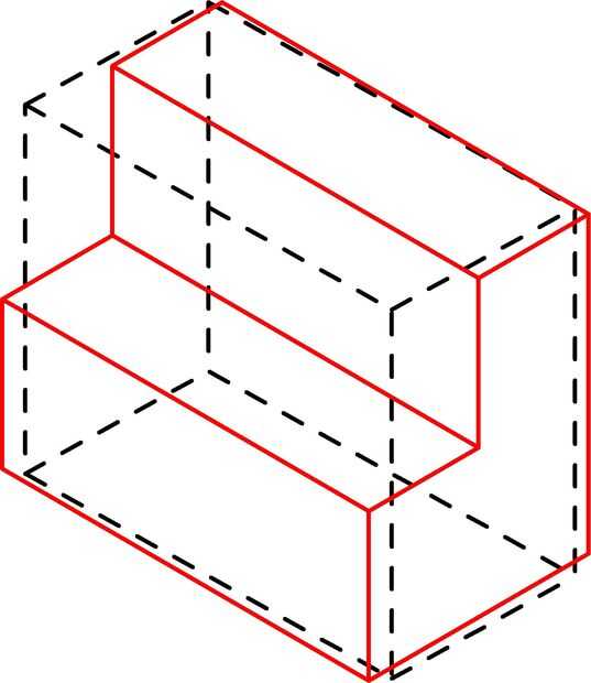 Puede y debe hacerlo en lápiz. Las líneas punteadas muestran la caja y el sólido rojo, el objeto.