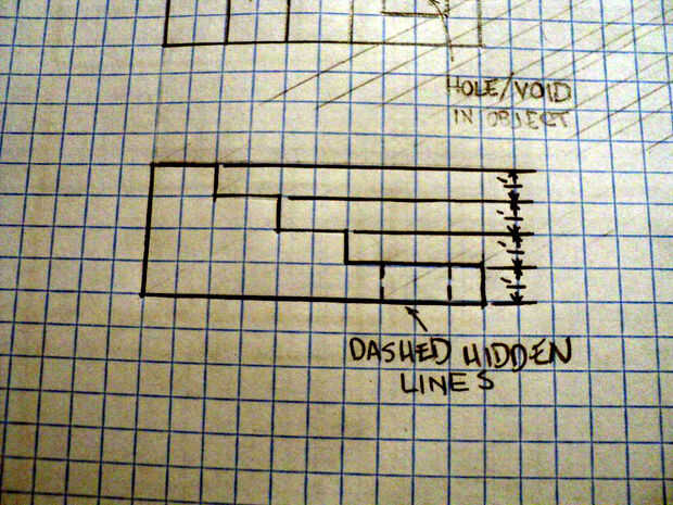Tenga en cuenta que las líneas ocultas son dibujadas con una línea punteada para que sea "invisible" o no vistas ante el objeto.