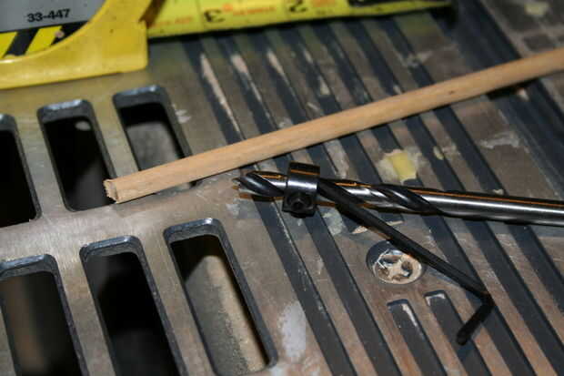 ** Estoy usando una broca de madera especial que tiene un cuello para este tipo de cosas. Utilizar la llave pequeña para aflojar el collar y a la profundidad deseada. Asegúrese de que usted apriete la tuerca en la broca correctamente.