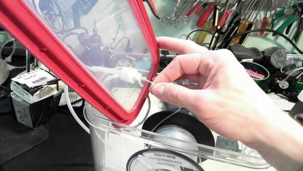 - Caja hermética como tupperware es una forma apropiada para el carrete (mina era un rubbermade que creo fue hecha para acomodar los cereales).