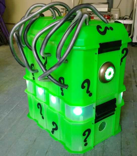 Este primer Testamento instructable muestra cómo construimos misterioso dispositivo de acertijo, que confiadamente se coloca sobre los rieles de teleférico de una doncella atada a él.