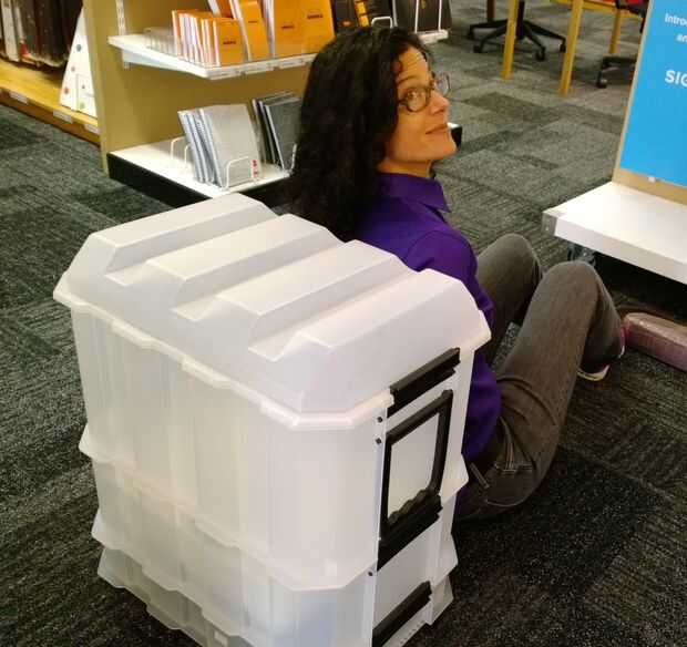 Primero, probamos el almacén de contenedores en el centro de SF, y la doncella posó junto a una serie de contenedores hasta que divisamos algo que se llama un "Busy Box". Cuando la gente nos miraba de forma extraña, pero que hacen que en cualquier momento estamos trabajando en un divertido proyecto.