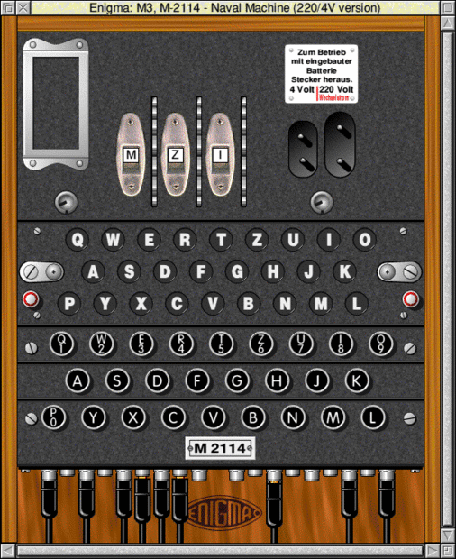 Se adjunta a este paso es el .zip que contiene un simulador del Enigma (ver pantalla de tiro). Tiene un tutorial completo en cómo usarlo.